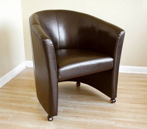 Contemporary Brown Full Leather Club Accent Chair w/Wheels Review